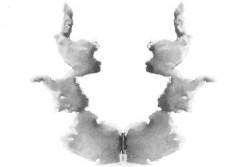На первой карточке изображено черно-белое чернильное пятно, которое часто ассоциируется с летучей мышью, молью или бабочкой. Анализ ассоциаций позволяет определить тип личности испытуемого.