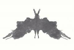На иллюстрации изображено черно-белое чернильное пятно, которое у многих вызывает ассоциации с летучей мышью, молью или бабочкой. Анализ этих ассоциаций может помочь выявить общий тип личности человека.