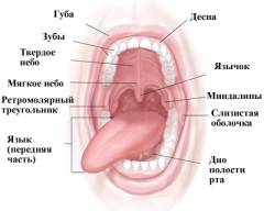 Полость рта — начальный участок пищеварительной системы, ограниченный губами спереди, щеками по бокам, твердым и мягким небом сверху, а снизу — языком и мышцами дна.