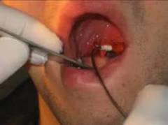 Обследование лакун осуществляется изогнутым зондом для взятия образца содержимого для бактериологического исследования. Зонд вводится в просвет канала для определения его глубины.