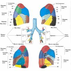 Каждая доля делится на сегменты: правое легкое имеет 10 сегментов, левое – 9. В медицине сегменты обозначаются латинской буквой S с указанием номера.