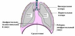 Плевра – парный орган, отделяющий легкие от грудной клетки. Это двуслойная оболочка, образующая плевральную щель, в которой обычно содержится до 2 мл плевральной жидкости. Листки плевры представляют собой серозную оболочку с капиллярами и лимфатическими сосудами, что способствует образованию и оттоку плевральной жидкости.