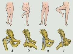 Симптомы в зависимости от вида смещения головки бедренной кости