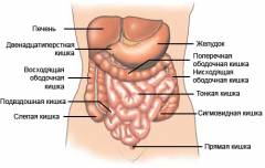 - ободочную кишку (восходящий, поперечный, нисходящий и сигмовидный отделы);
