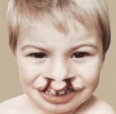 Изолированная расщелина губы (заячья губа). Между 4-м и 5-м месяцами жизни проводится хирургическая процедура по полному закрытию расщелины. В рамках этой же операции приподнимается кончик носа и удлиняется носовая перегородка. Расщелина губы не имеет функциональных последствий.