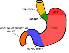 Отделы желудка: